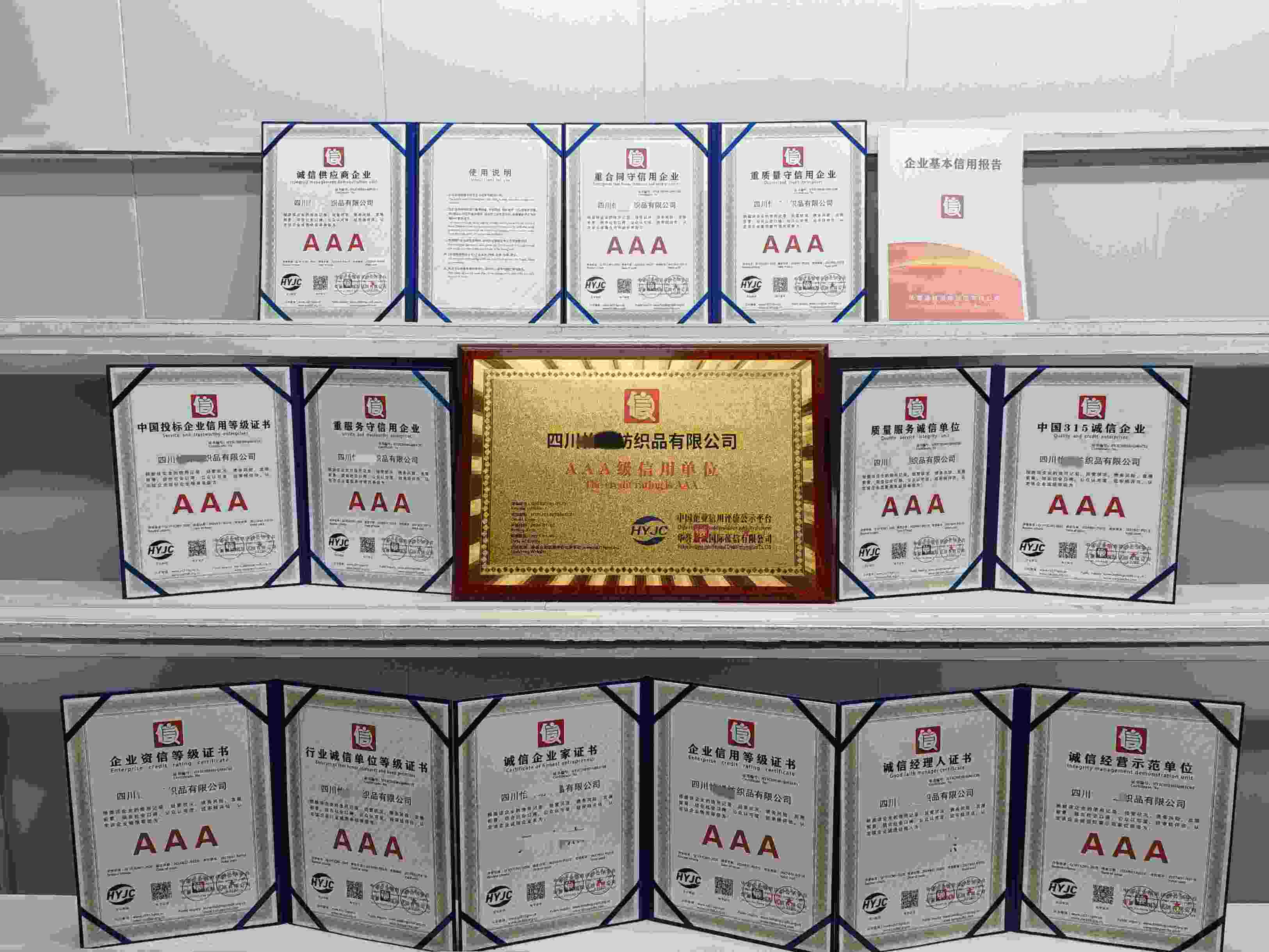 恭喜四川怡祥纺织品有限公司顺利通过AAA信用认证,四川怡祥纺织品有限公司办理AAA信用等级证书