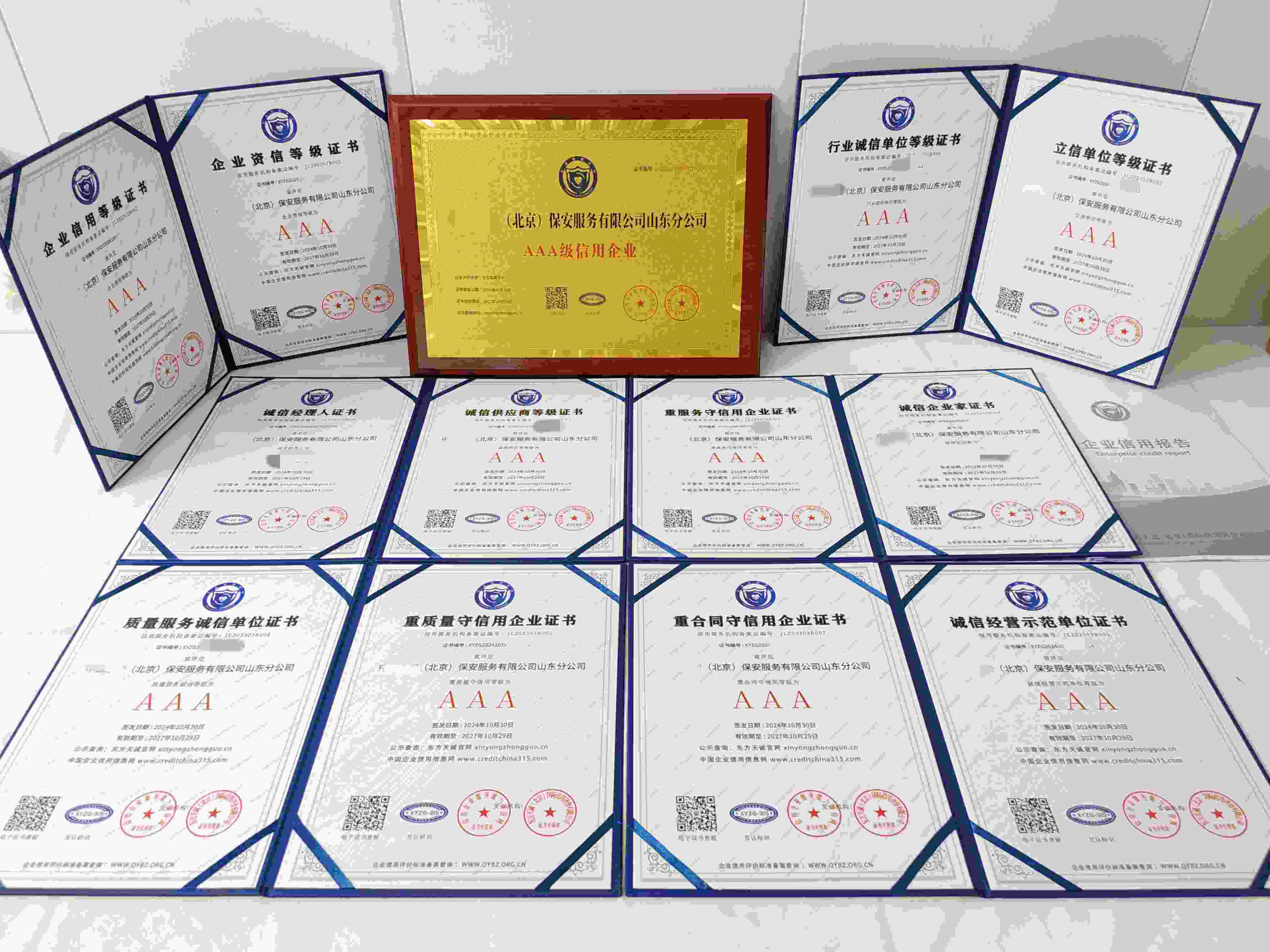 恭喜中保永安(北京)保安服务有限公司山东分公司顺利通过AAA信用认证,中保永安(北京)保安服务有限公司山东分公司办理AAA信用等级证书