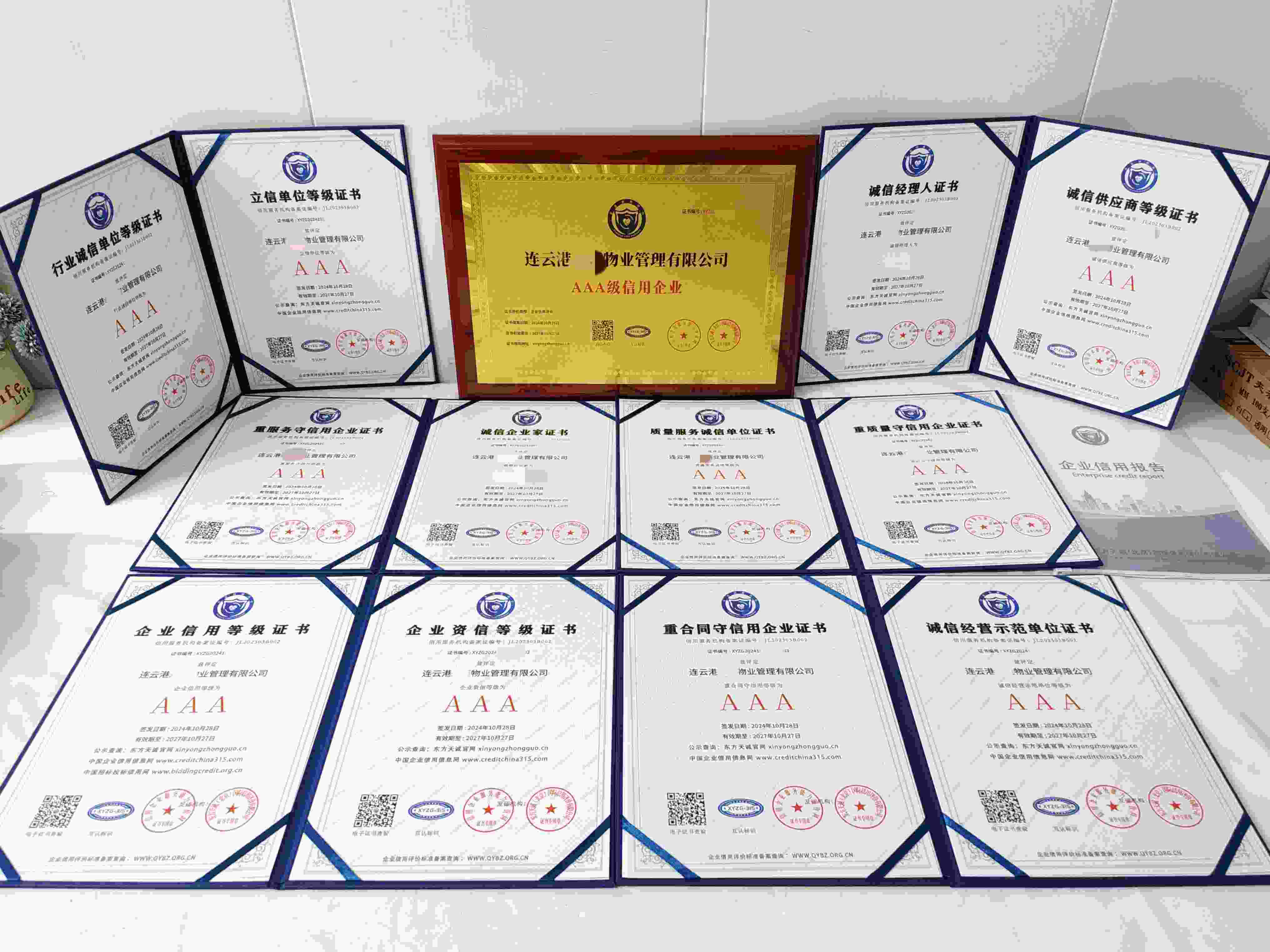 恭喜连云港永恒物业管理有限公司山东分公司顺利通过AAA信用认证,连云港永恒物业管理有限公司山东分公司办理AAA信用等级证书