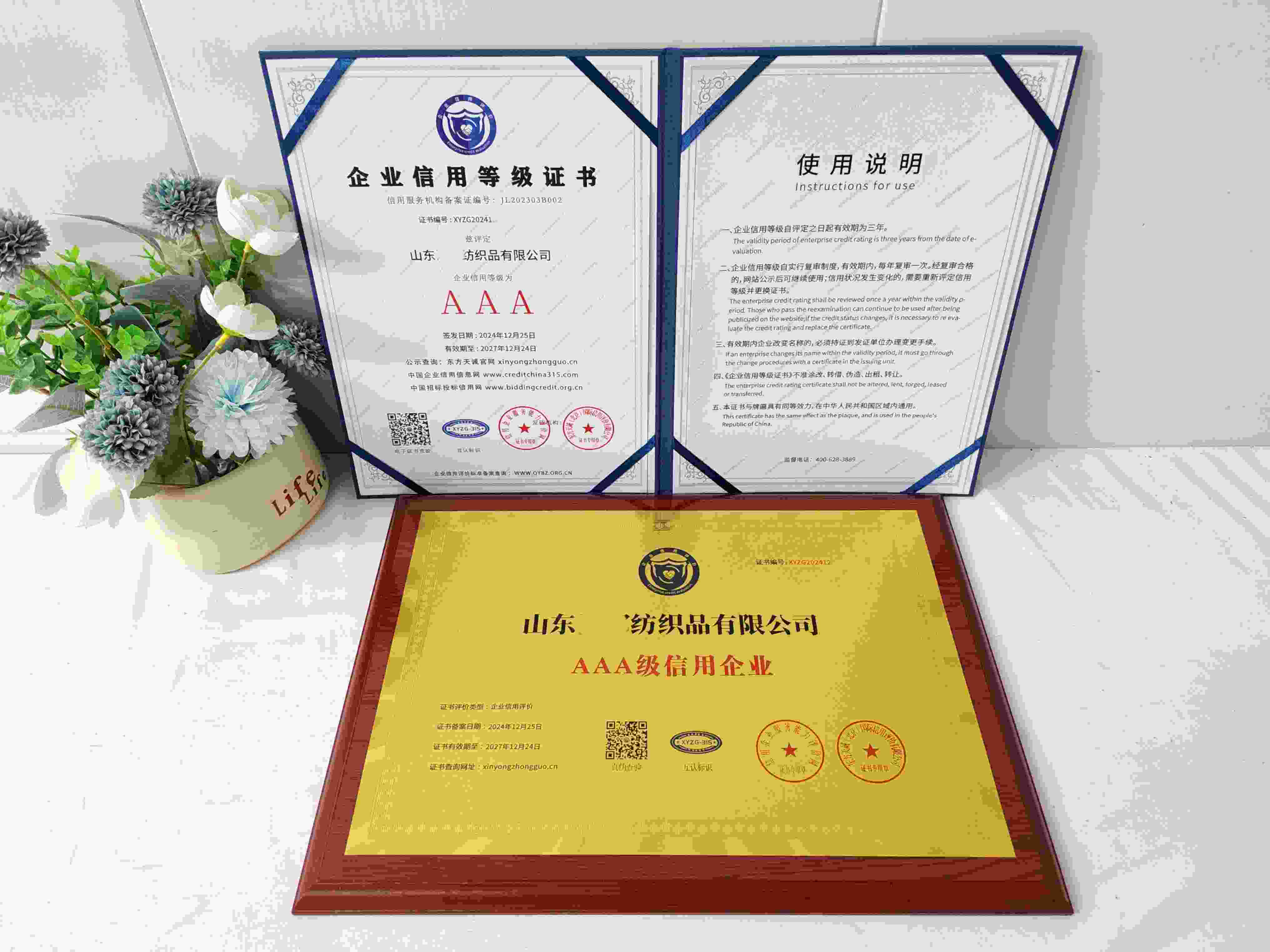 恭喜山东沂邦纺织品有限公司顺利通过AAA信用认证,山东沂邦纺织品有限公司办理AAA信用等级证书