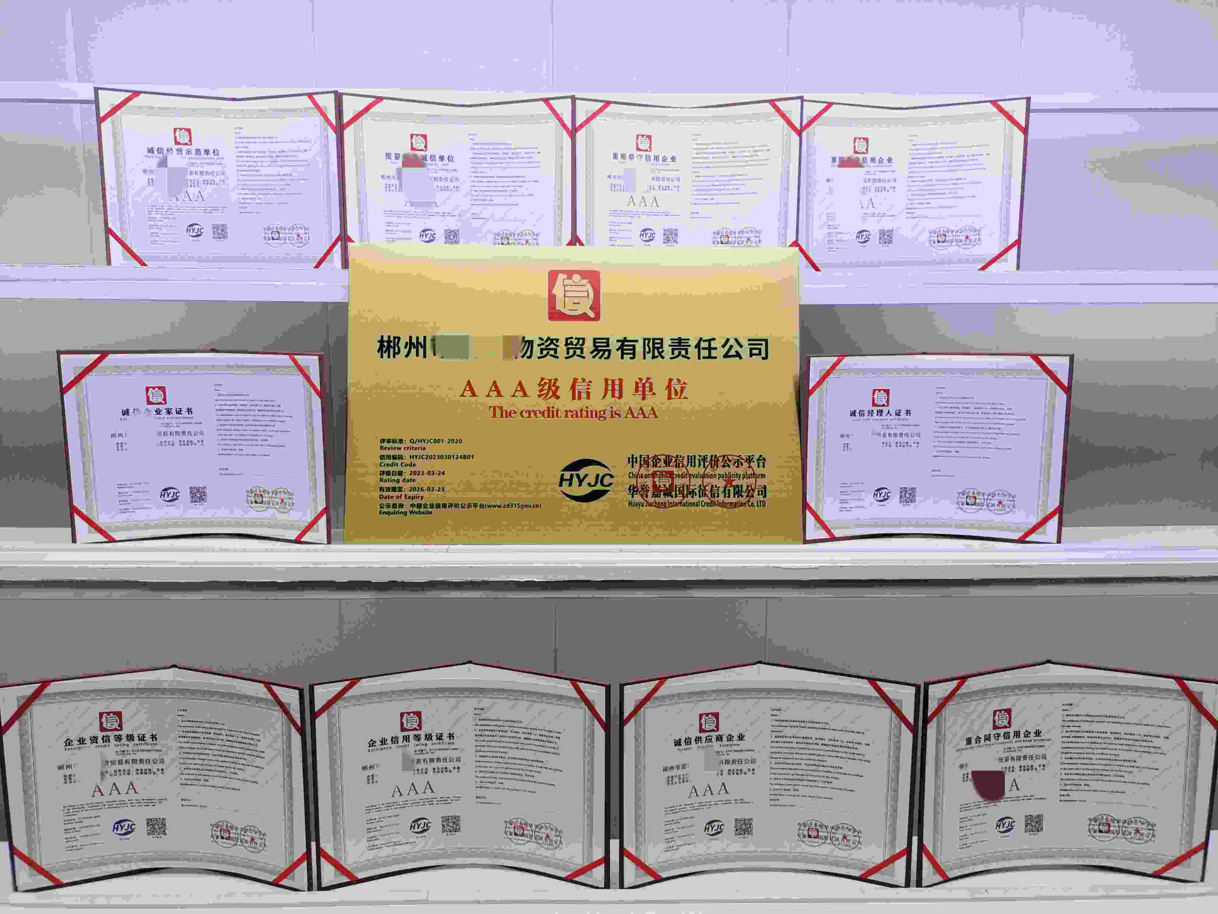 恭喜郴州市前银物资贸易有限责任公司顺利通过AAA信用认证,郴州市前银物资贸易有限责任公司办理AAA信用等级证书