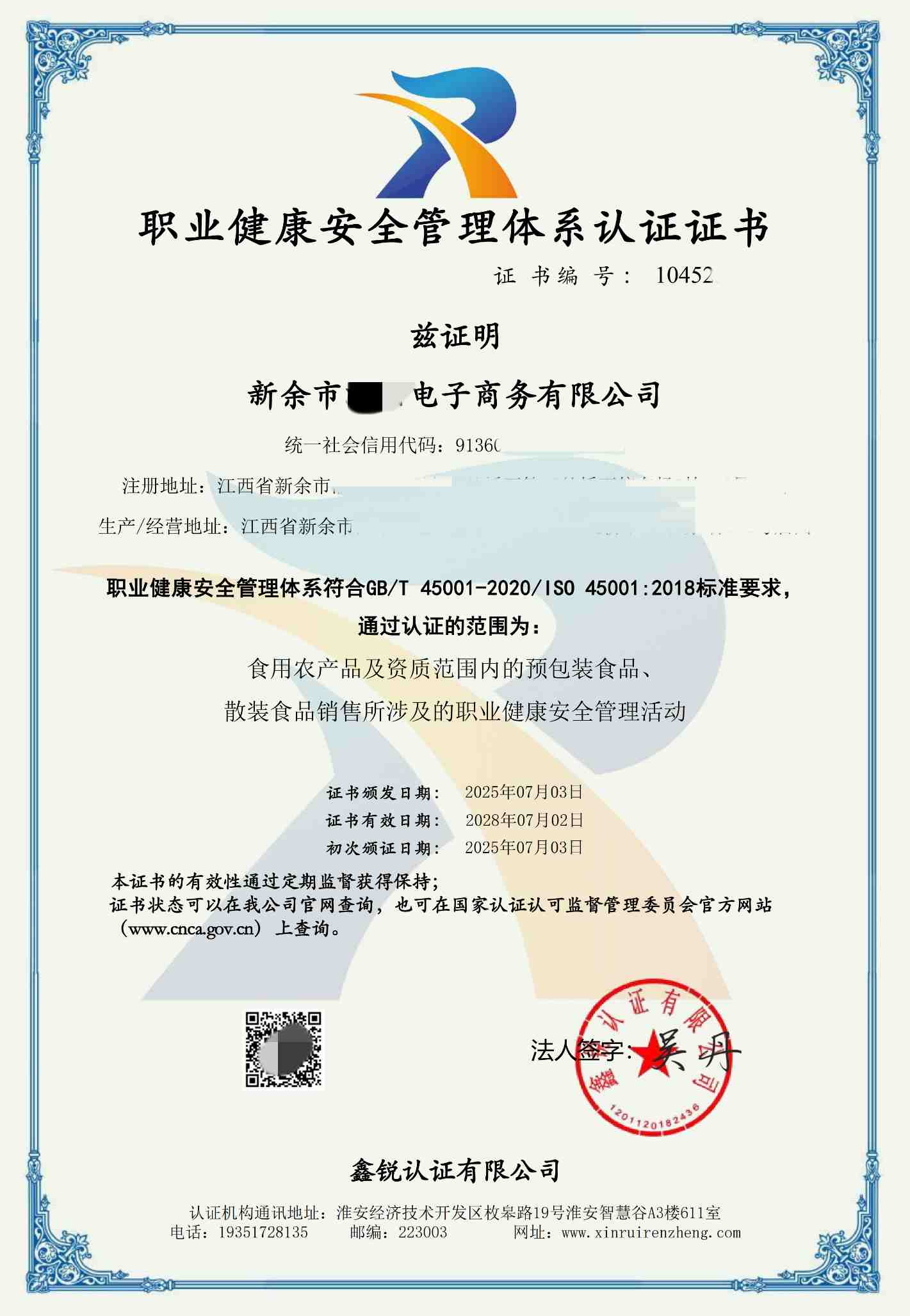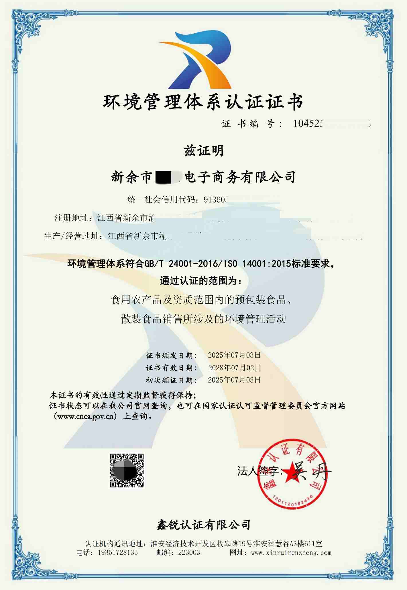 文章出处:新余市泓兴电子商务有限公司办理ISO三体系认证证书,由国家认监委备案机构:鑫锐认证有限公司颁发的ISO三体系认证证书   作者:恒智通达国际认证有限公司    人气: 发表时间:2025-09-08