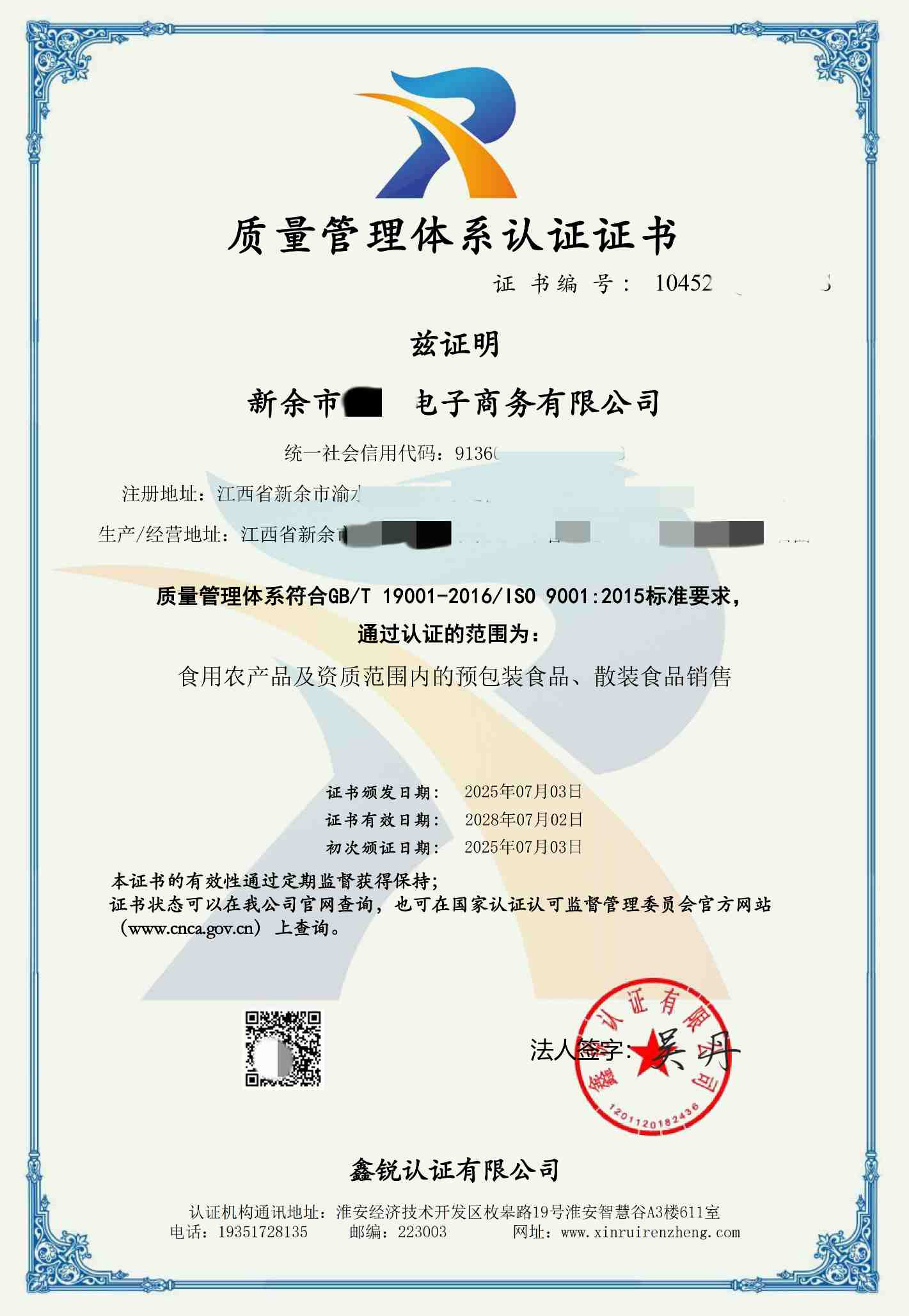 新余市泓兴电子商务有限公司司办理ISO9001体系认证证书/AAA信用等级证书/商标/软件著作权/实用新型专利/人员证书/行业资质证书/两化融合贯标等项目认证均可联系我司办理